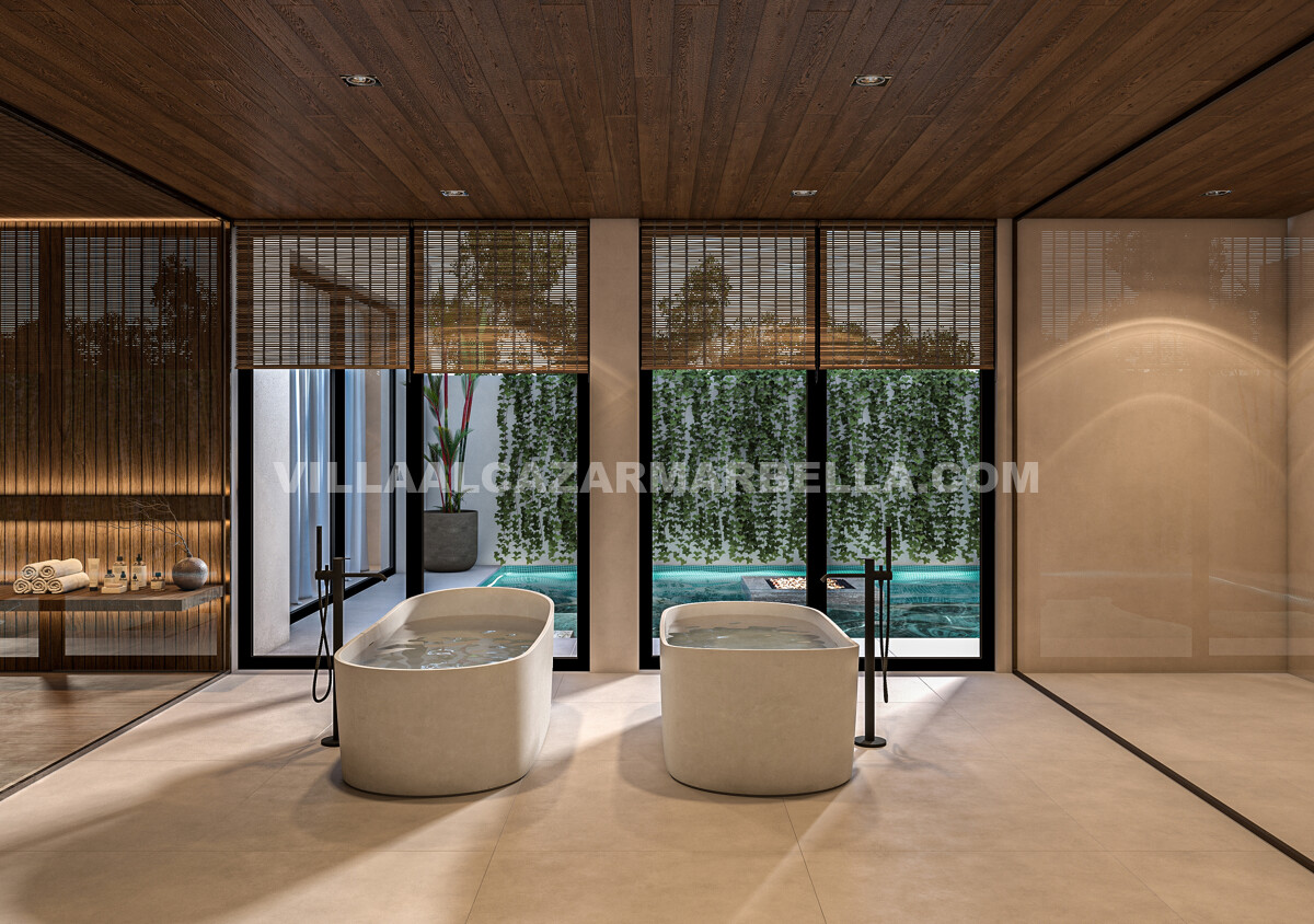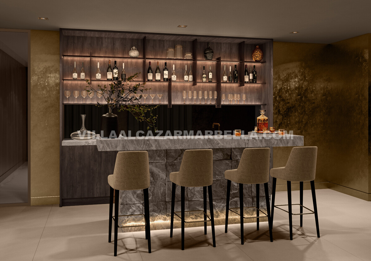 The upper floor includes beautifully designed en-suite bedrooms with private terraces, while the lower level is dedicated to leisure and wellbeing. Here, the property includes additional bedroom suites together with a cinema room, wine cellar, games room, gym, laundry area and a private spa featuring a sauna, hammam and ice bath. A five-car garage, carport, lift and dual access points complete this impressive residence. Estimated completion is between March and May 2027, with phased payment terms available.